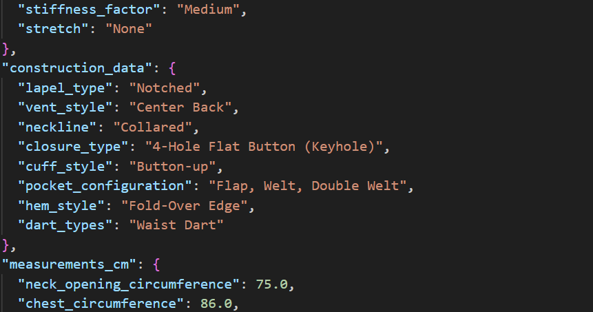 Bespoke, detailed metadata taxonomy with over 250 points of classification per garment.